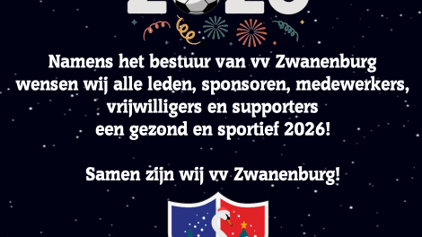 Kom op 4 januari naar de Nieuwjaarsreceptie van vv Zwanenburg. Om 12.30u speelt de JO10-1 tegen de JO11-1. En dan om 14.00u speelt vv Zwanenburg 1 tegen een Legends team...